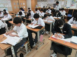 冷たい風が吹く朝でしたが、生徒たちは変わらず元気に登校してきました。ある学級では、級長から「2分前着席を目指し、自分にできることを考えて行動しよう」、担任からは「締めくくりの2週間、やるべきことをやって締めくくろう」という話がありました。強い決意を胸に、今週がスタートしました。