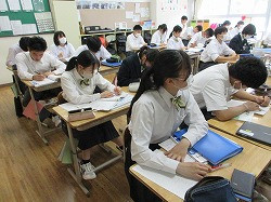 「受験期の食事」と題して話があり、生徒達は何度も頷くなど、興味深く聞いていました。